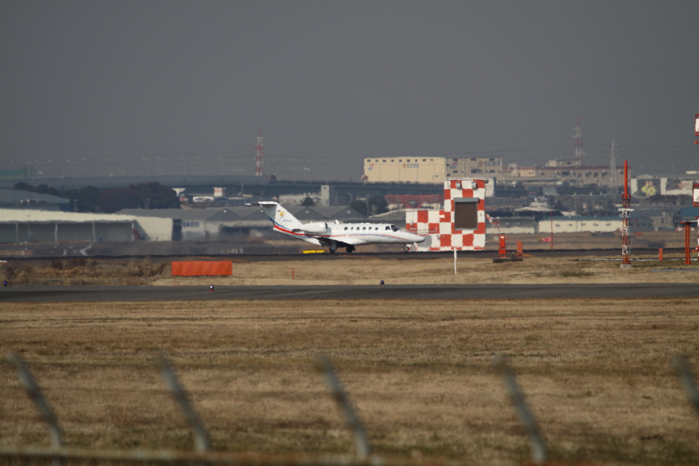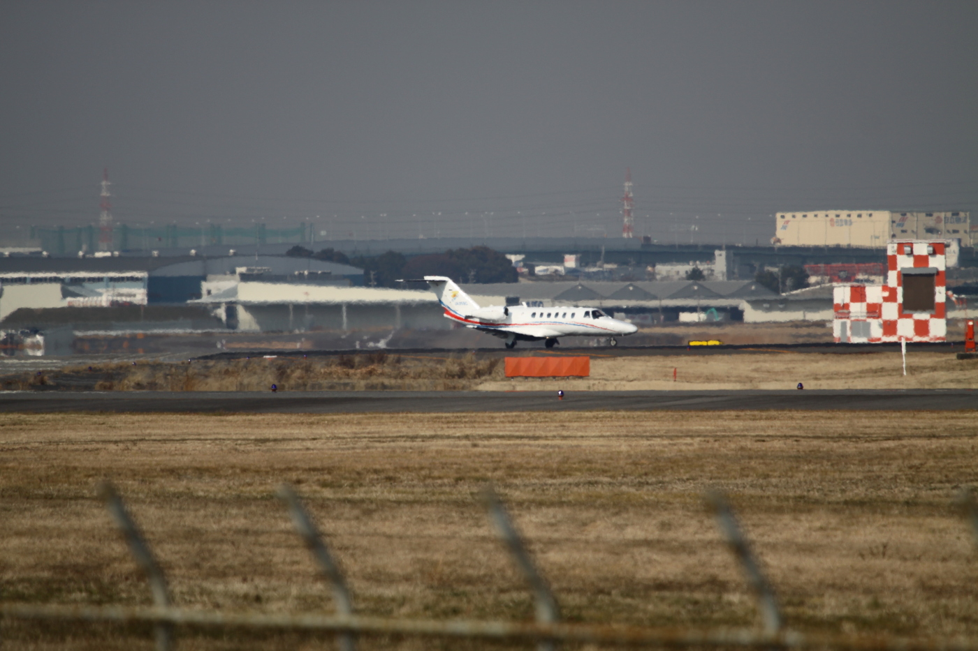 この日は,まだレジナンバーのみで塗装もしてない小型ジェットが,タッチアンドゴーを繰り返していました.どこの飛行機かわからなかったのですが,レジナンバーから,東京センチュリーリースのセスナ680とわかりました.