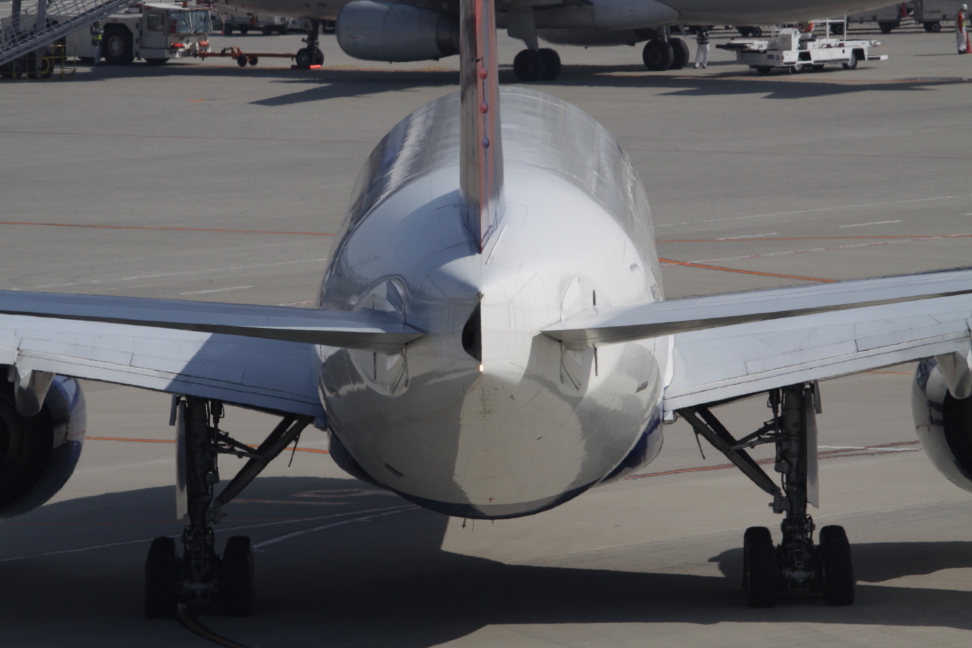 ANAのプロペラ機がジェットと同じ駐機場を使っているので,トーイングカーでプッシュバックするのかと思ったら,Uターンしていました.