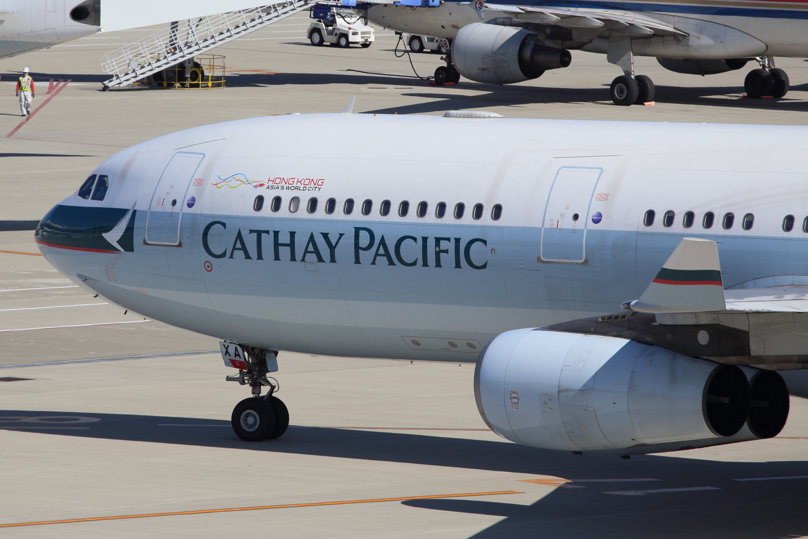キャセイは午前と午後に777-300。午後便にもう1機エアバス340-300といずれも大型機の投入。