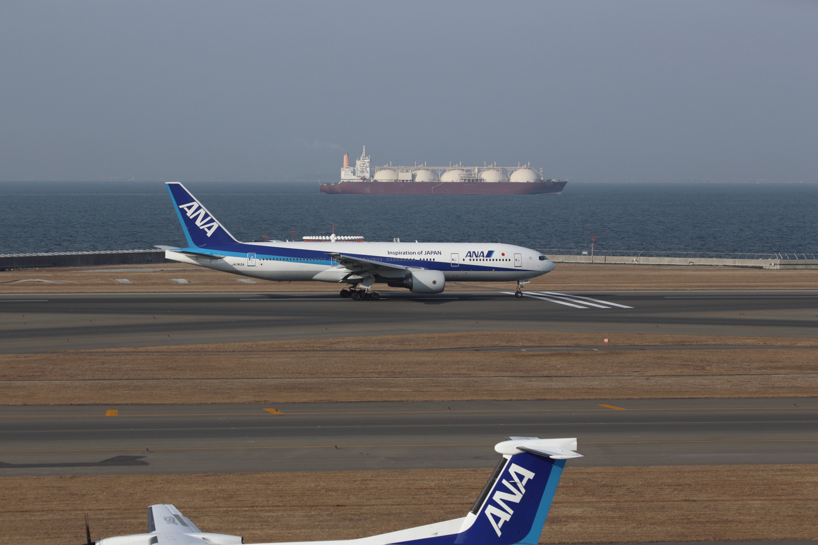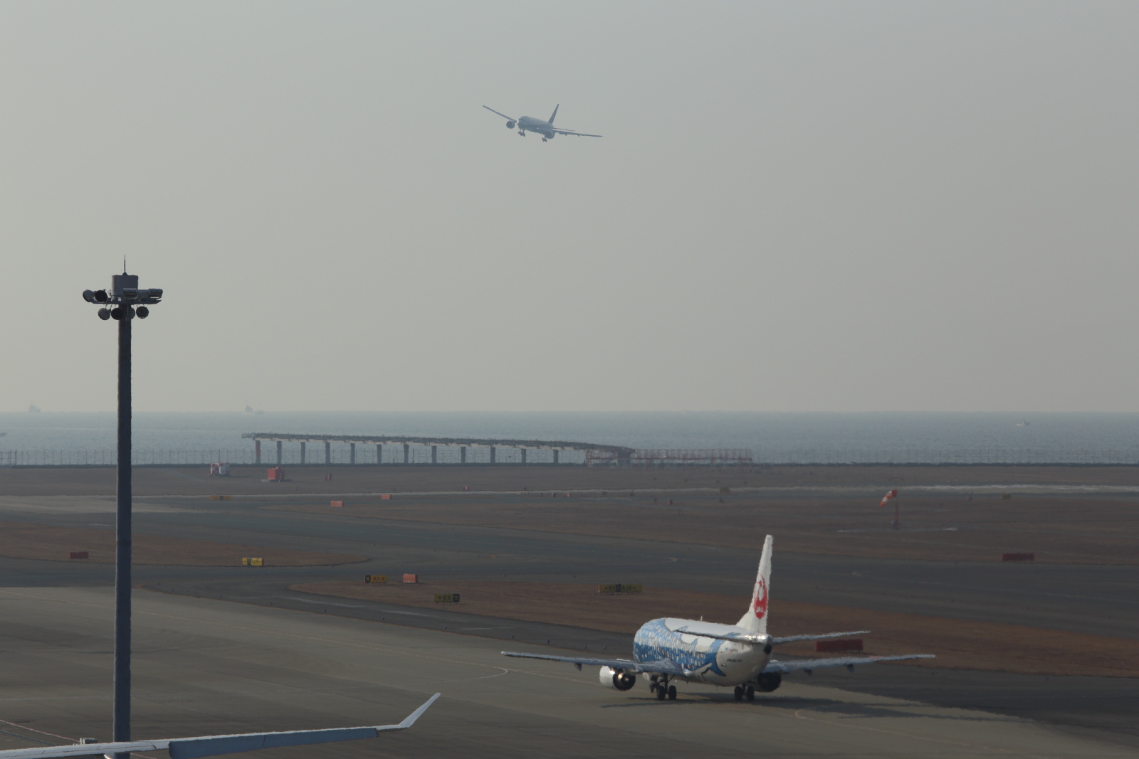 この日は、ANAのトリプルセブンがタッチアンドゴ−で訓練飛行。