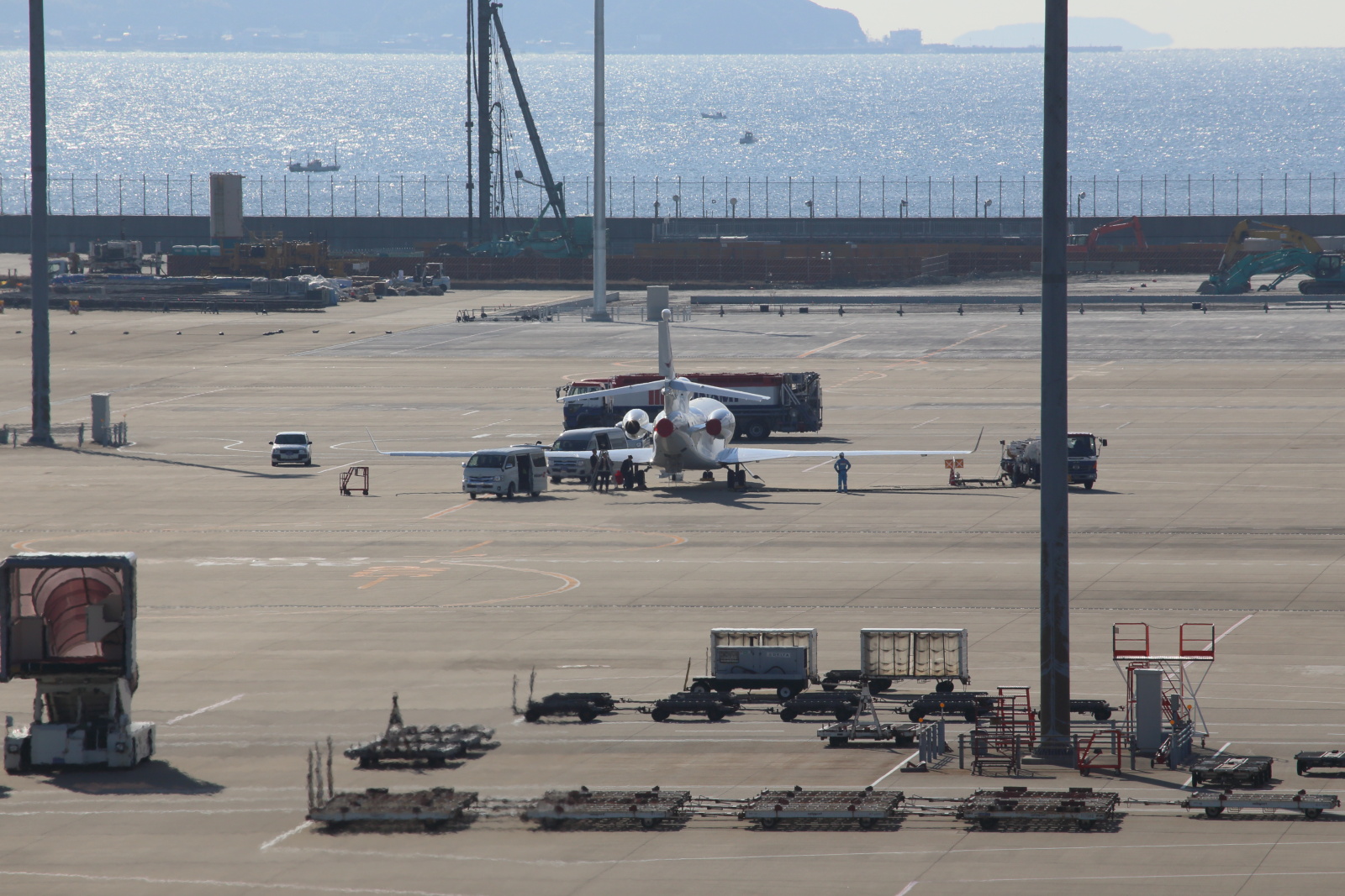 ビジネスジェットが2機見られました。「ビスタジェット」のボンバルディアと「金鹿航空」のダッソー。これは、ビジネスジェットクラスなのに、エンジンが3基ある珍しい機体です。