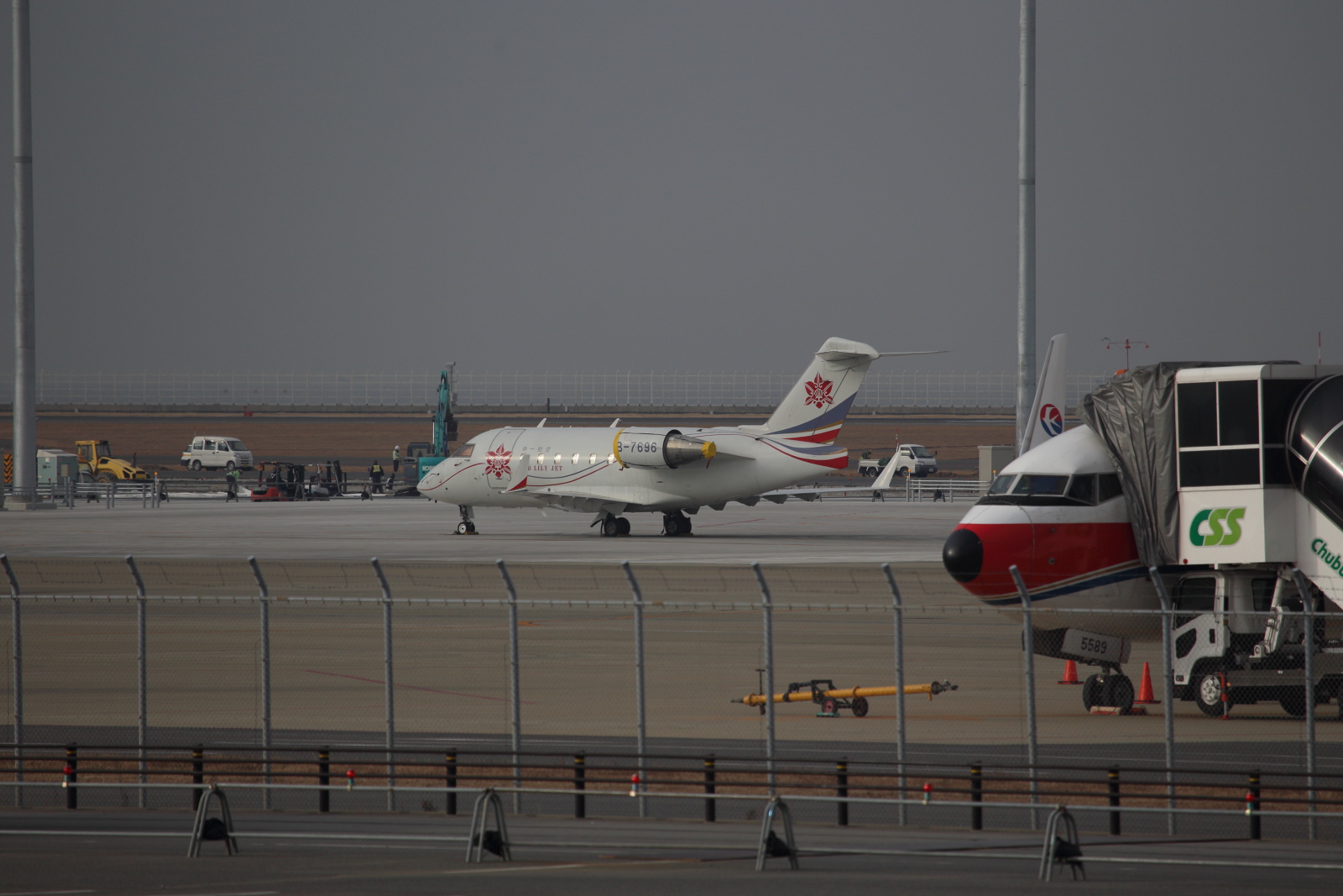 中国のビジネスジェットが2機、同じく中国の自動車部品メーカーMINTHグループのエアバス、ヨーロッパのビスタジェットなど、普段見られない飛行機が見られました。
