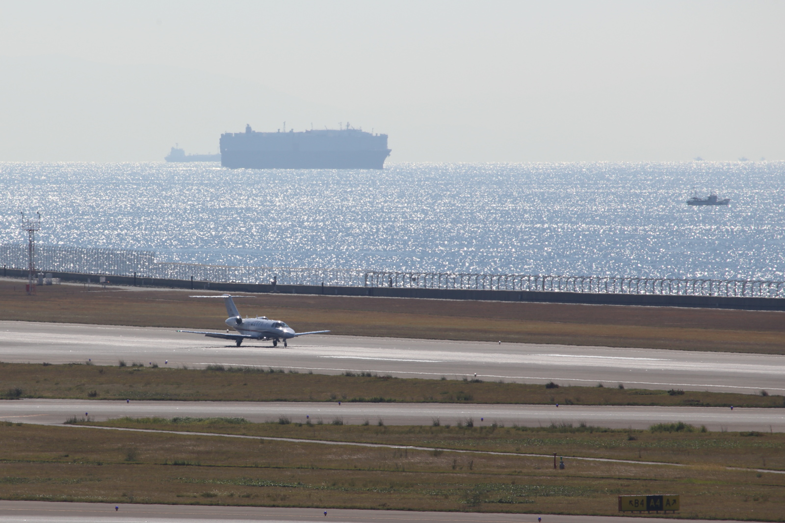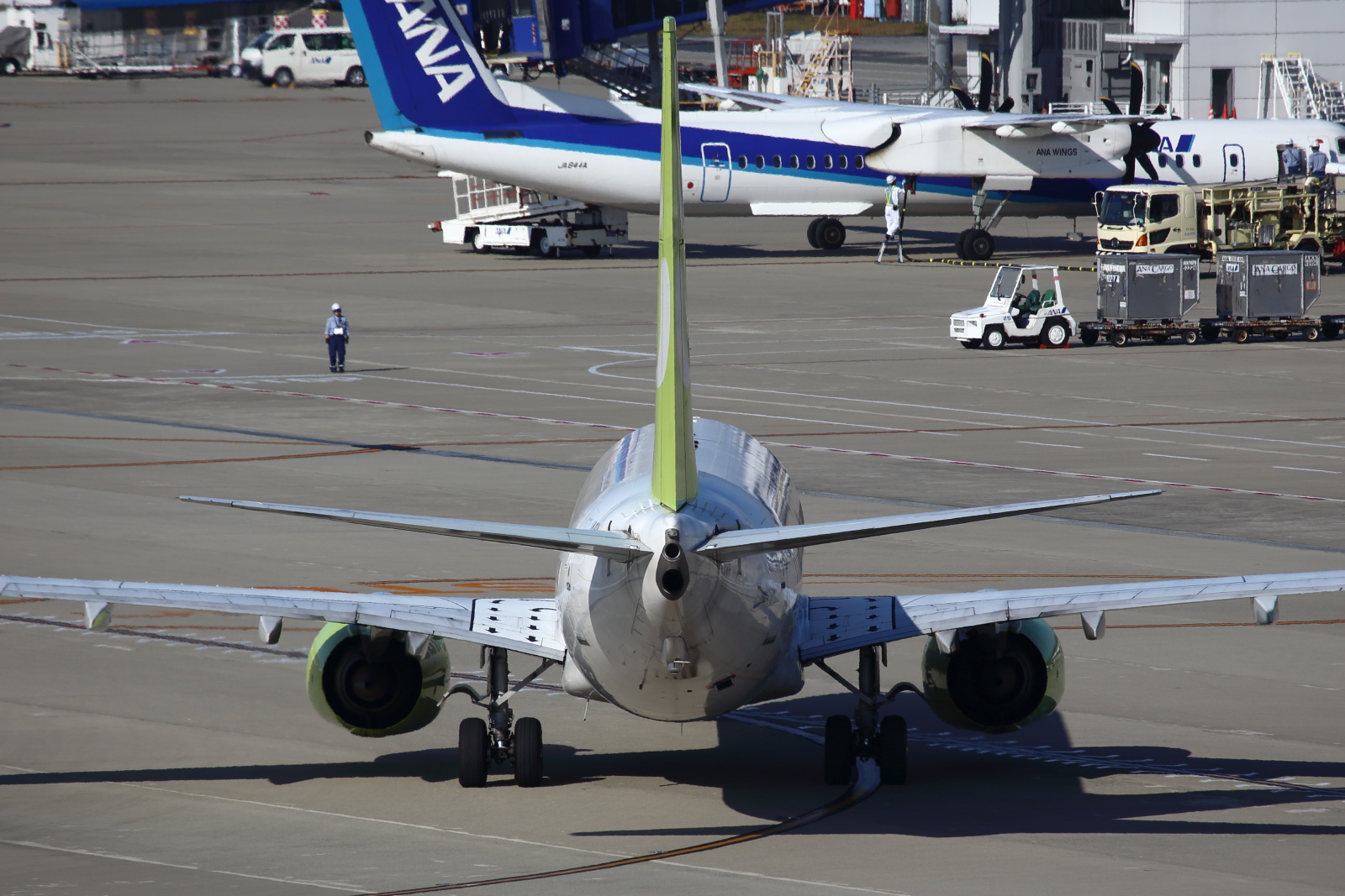 ユナイテッドの737が、タイヤの不都合があったのか交換していました。また、落下物でもあるのではないかと、誘導路を点検していました。その後、1時半頃無事出発していきました。