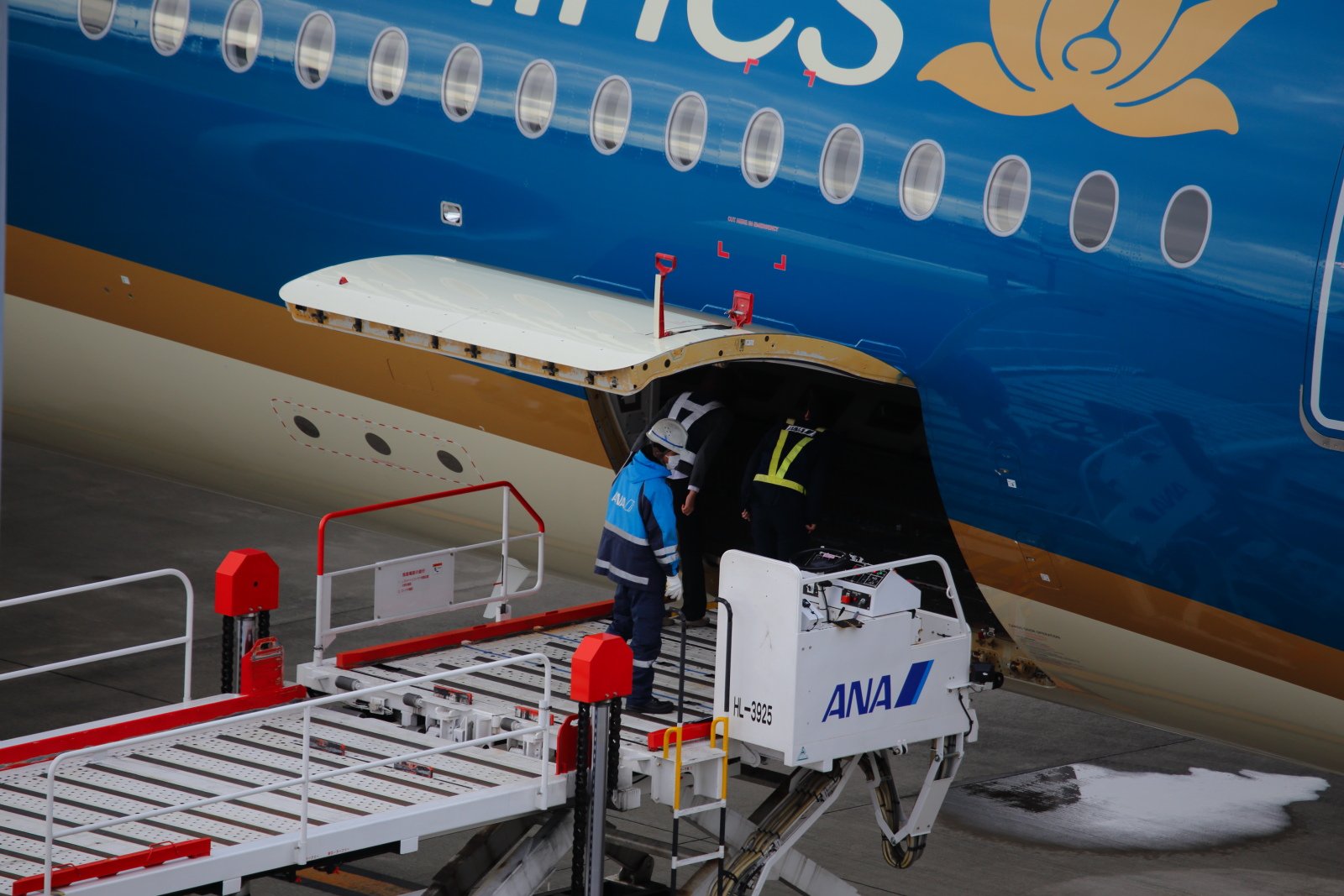 12月29日にベトナム航空が、この日と1月3日に、中部国際空港-ハノイ便にエアバスA350を投入しました。エアバスA350はセントレア初お目見え。そのためか、この日だけ展望デッキを6時に開場して、歓迎放水も行われるということで、6時少し過ぎに展望デッキへ上がりました。ところが、まだ日の出前でほんの少し明るい程度。