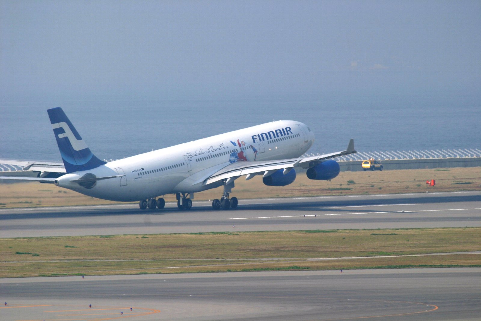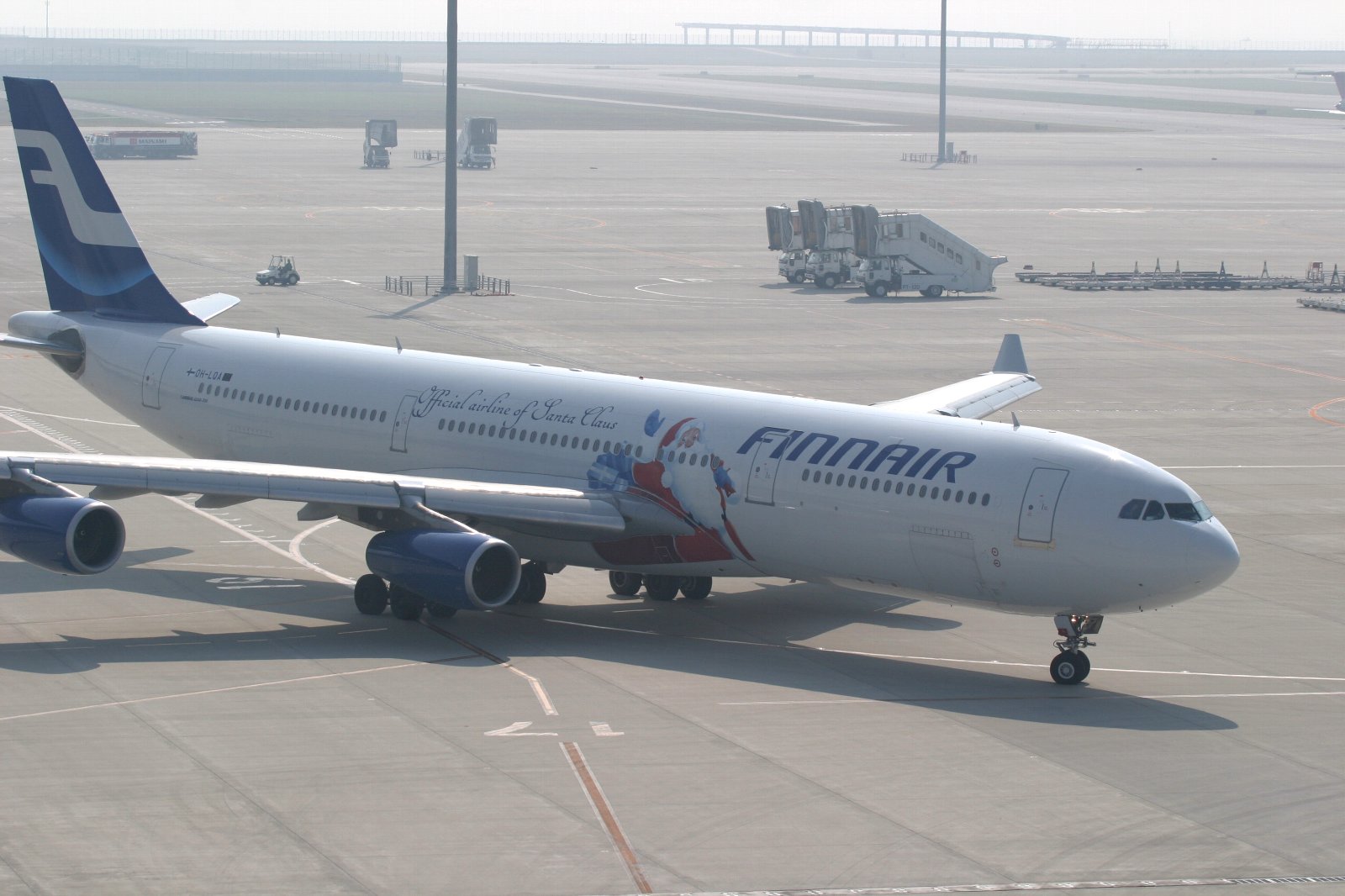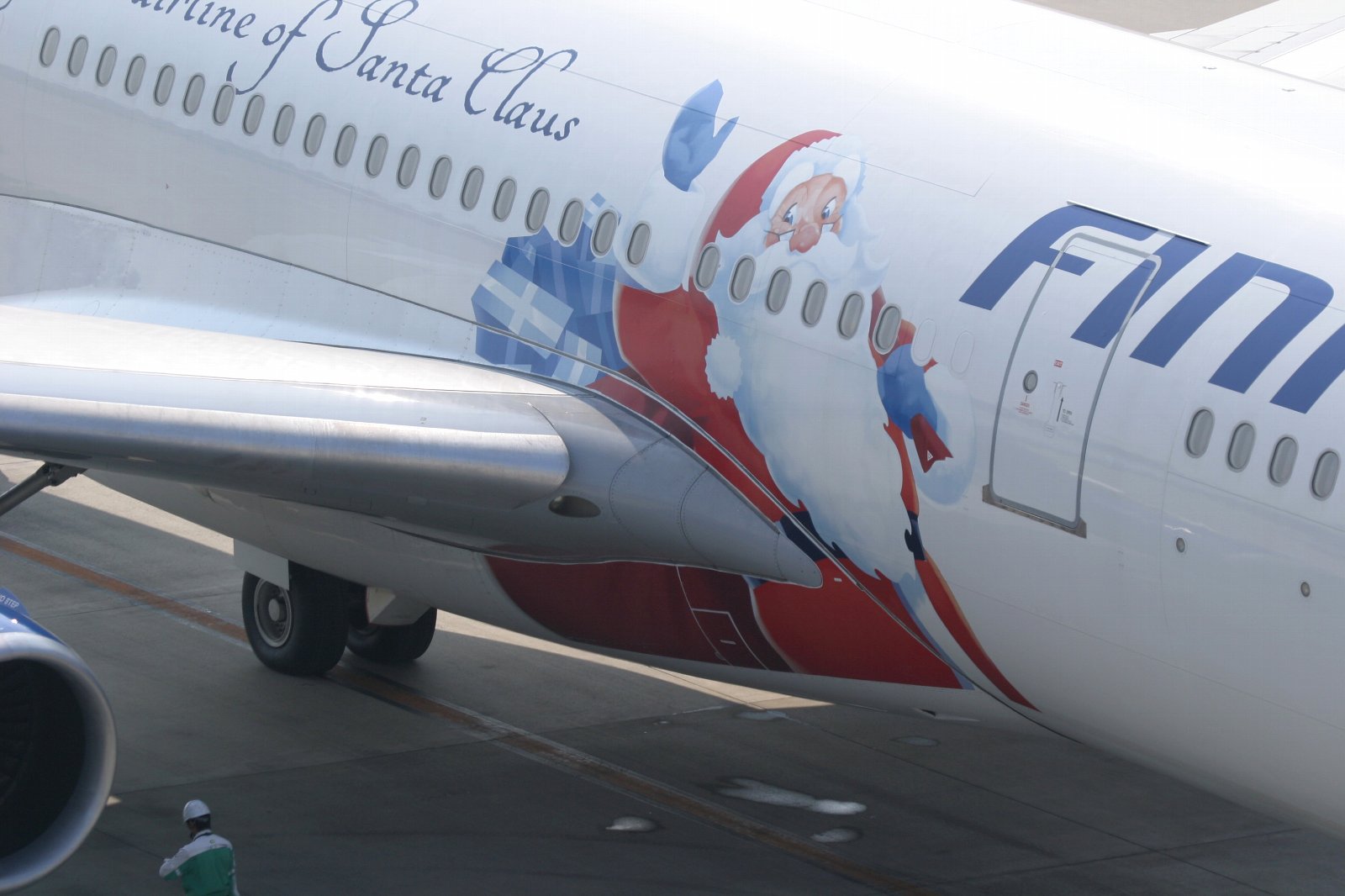 フィンランド航空のエアバスA340-300.サンタクロース塗装機