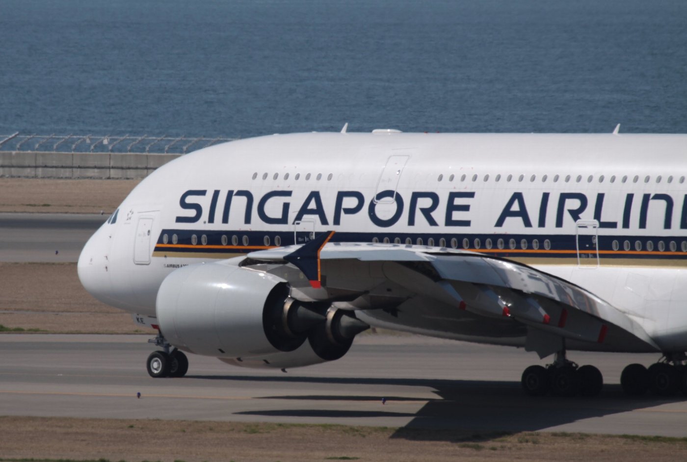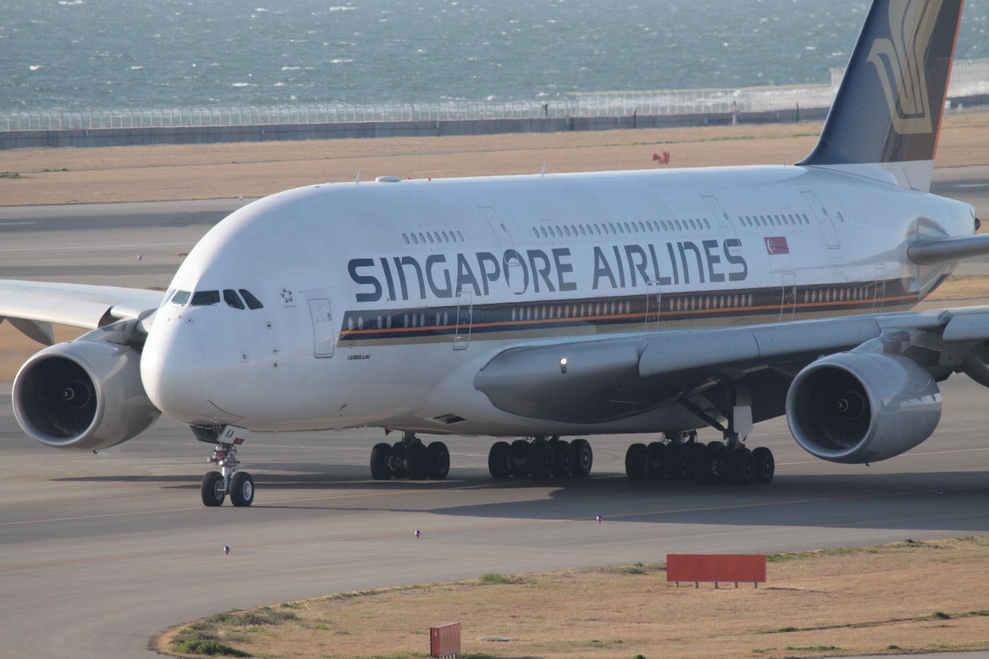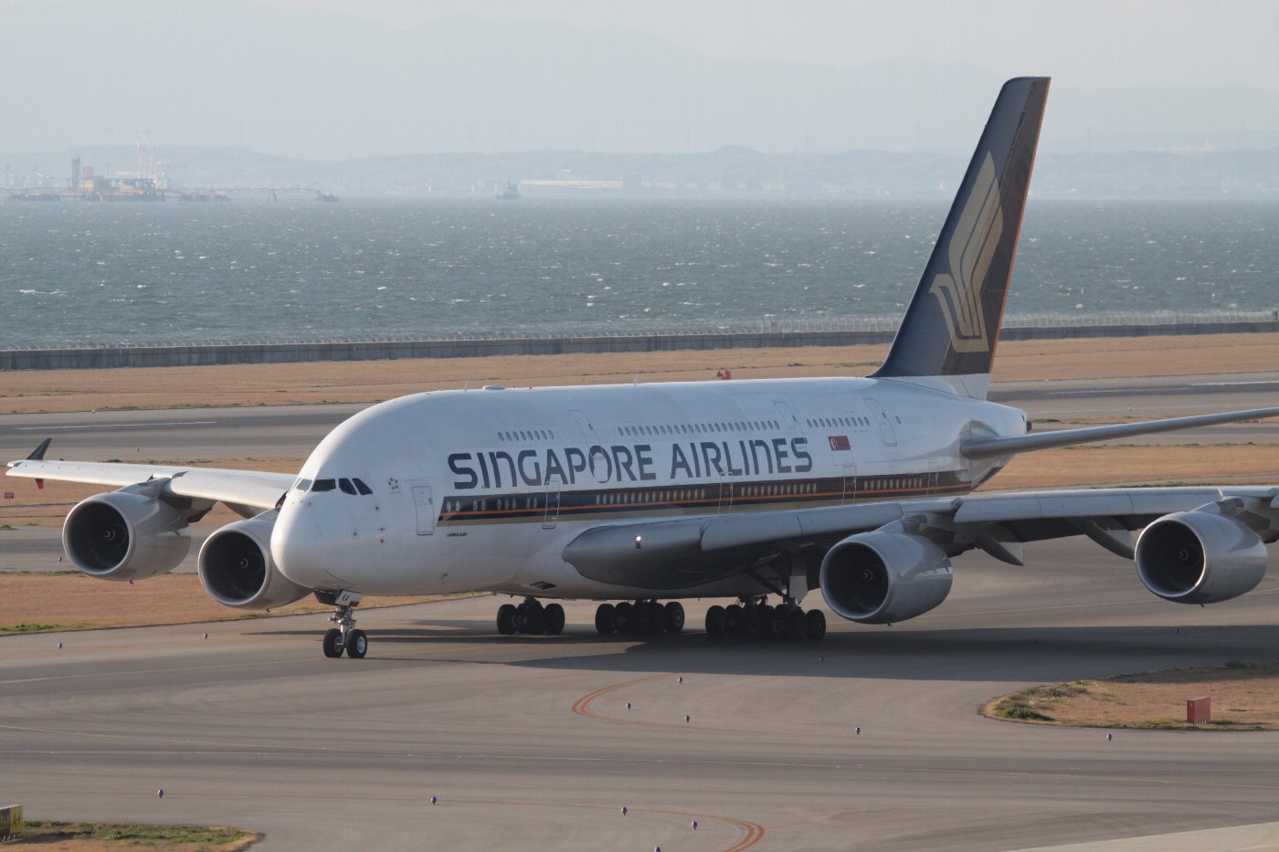| シンガポール航空のエアバスA-380 午前16時半頃出発 |