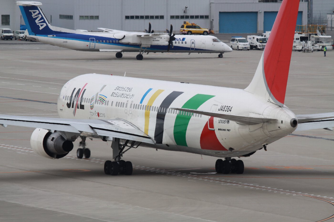 | JALのボーイング767-300.2016年オリンピック・パラリンピックの東京招致活動を応援する特別塗装機 |